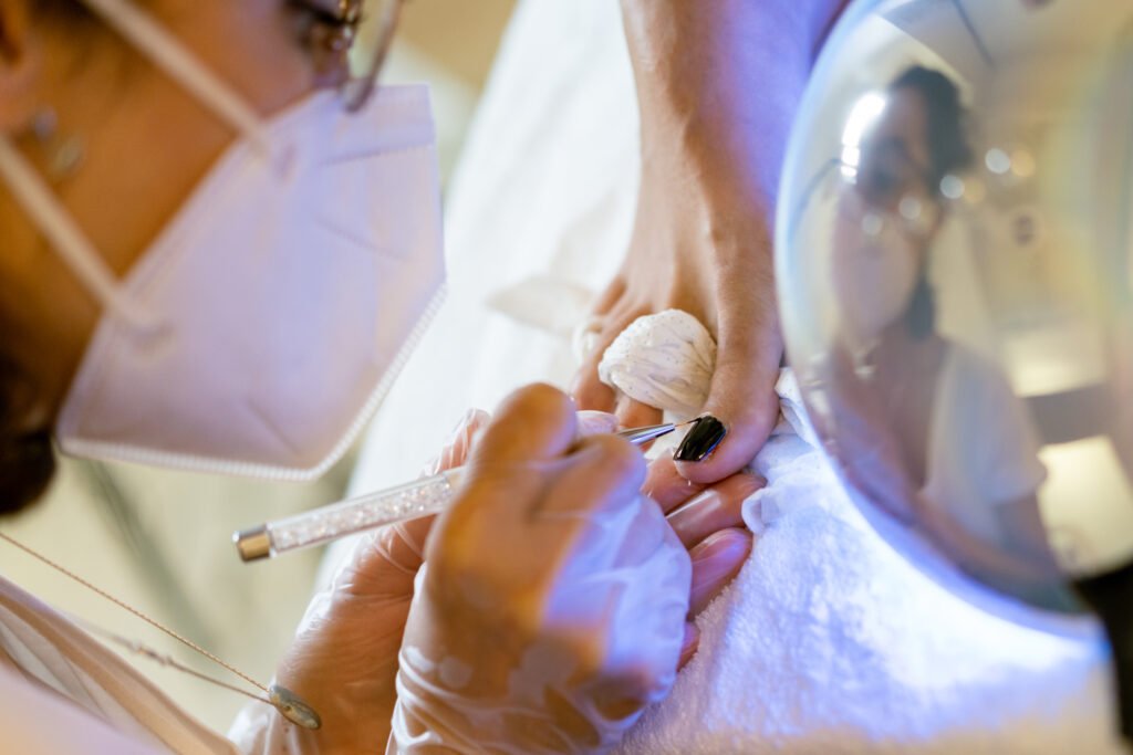 Servicio avanzado con esmaltado semipermanente reforzado para un acabado duradero y elegante.